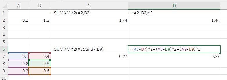 ▼ SUMXMY2関数 (配列要素の差の平方和の合計を返す関数)
